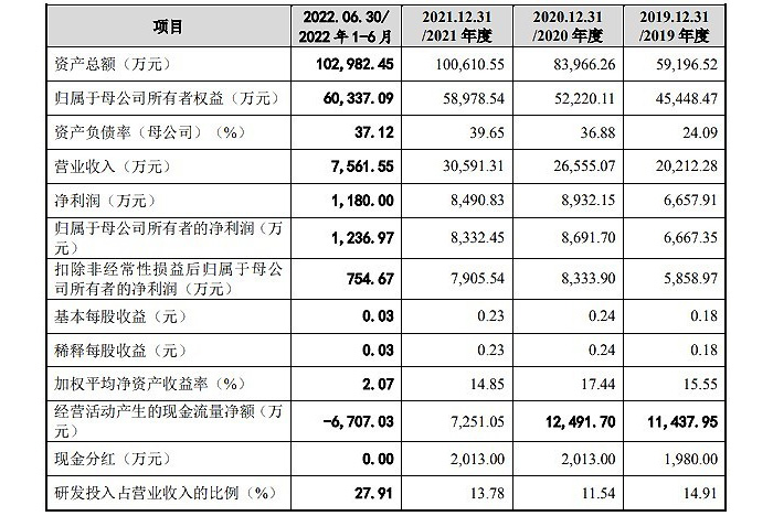 財務方面,于2019年度、2020年度、2021年度,公司實現營業收入約為2.02億元、2.66億元、3.06億元。凈利潤分別約為6657.91萬元、8932.15萬元、8490.83萬元。